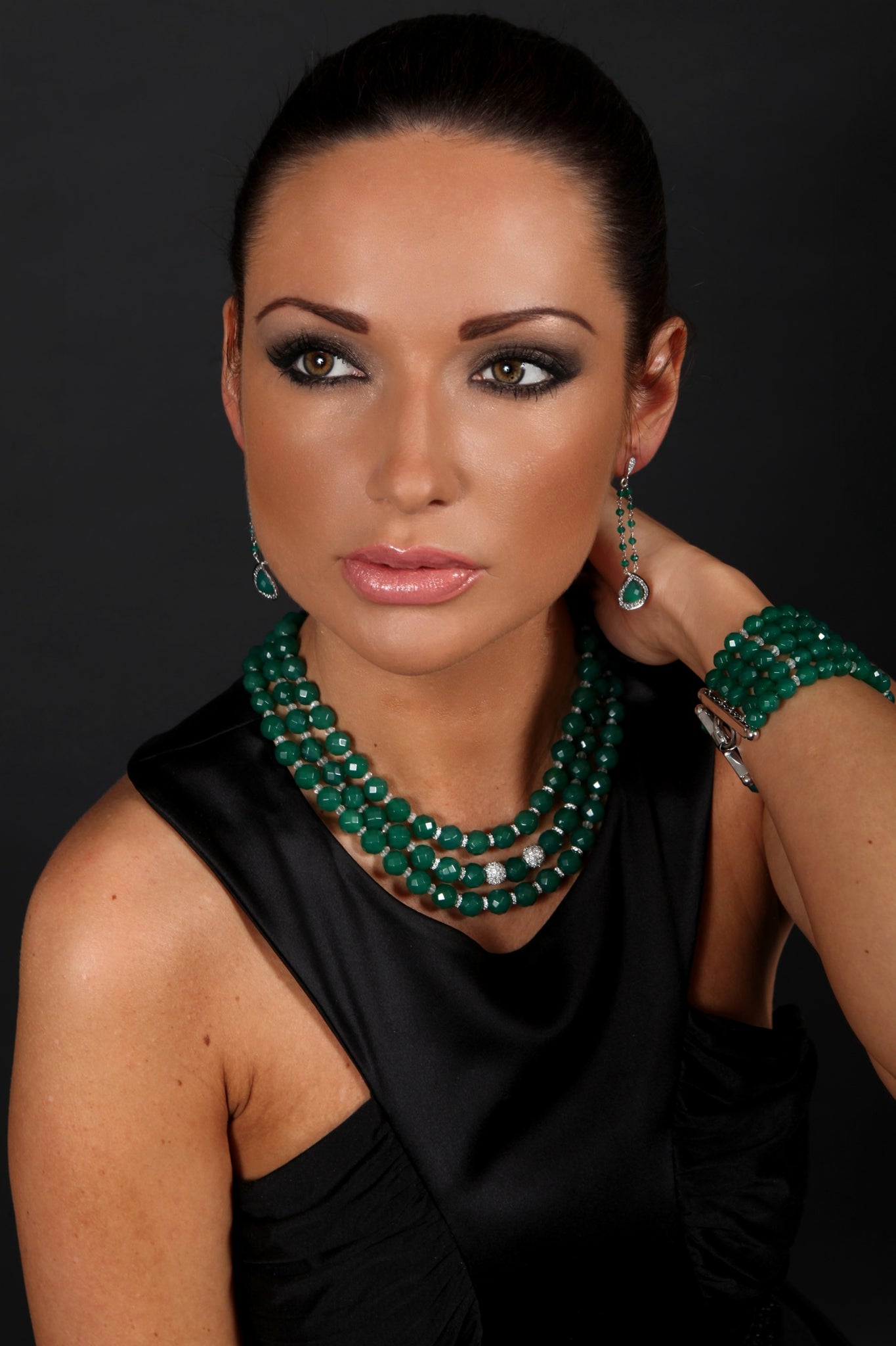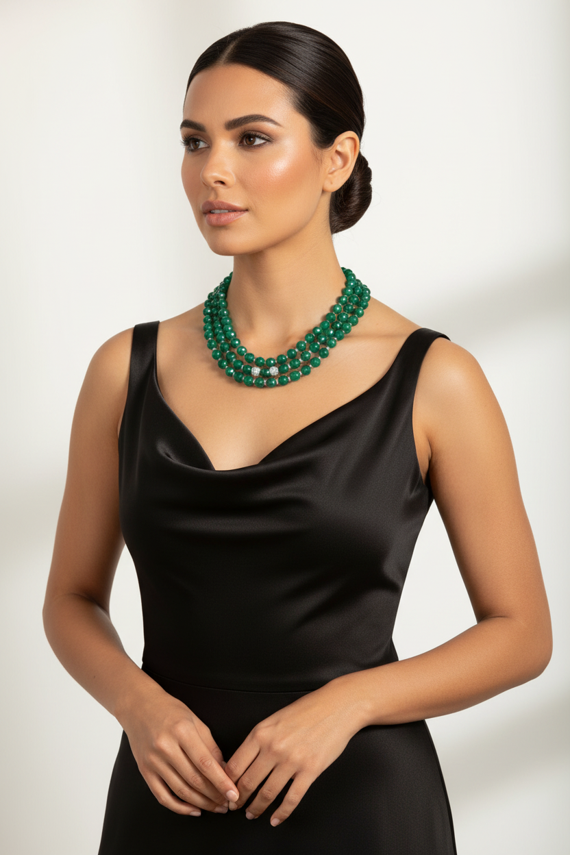 Elevate your style with our Green Agate Three Row Necklace. Crafted with stunning green agate stones and accented by starburst cz centers, this necklace exudes sophistication and exclusivity. Perfect for any occasion, this necklace will add a touch of luxury to your wardrobe.
