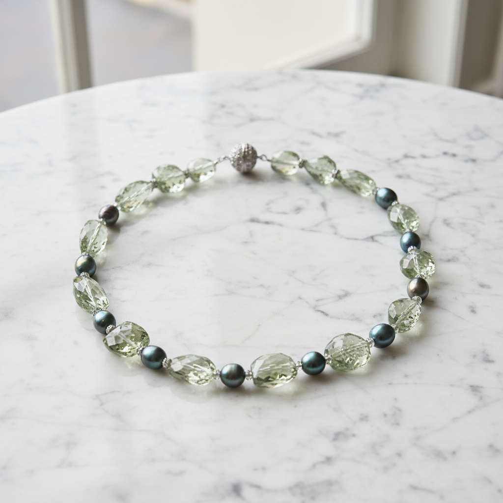 Green Amethyst and Green Pearl Necklace