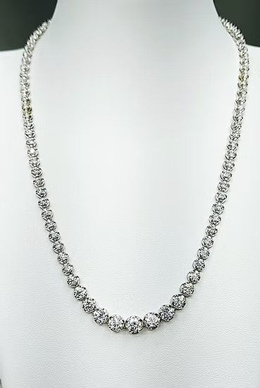 This tennis necklace is finished with 10.63ct. t.w. of round lab grown diamonds. It is crafted in 14k gold. It is also available in 18k gold and Platinum. Please contact us for different metal and color options.