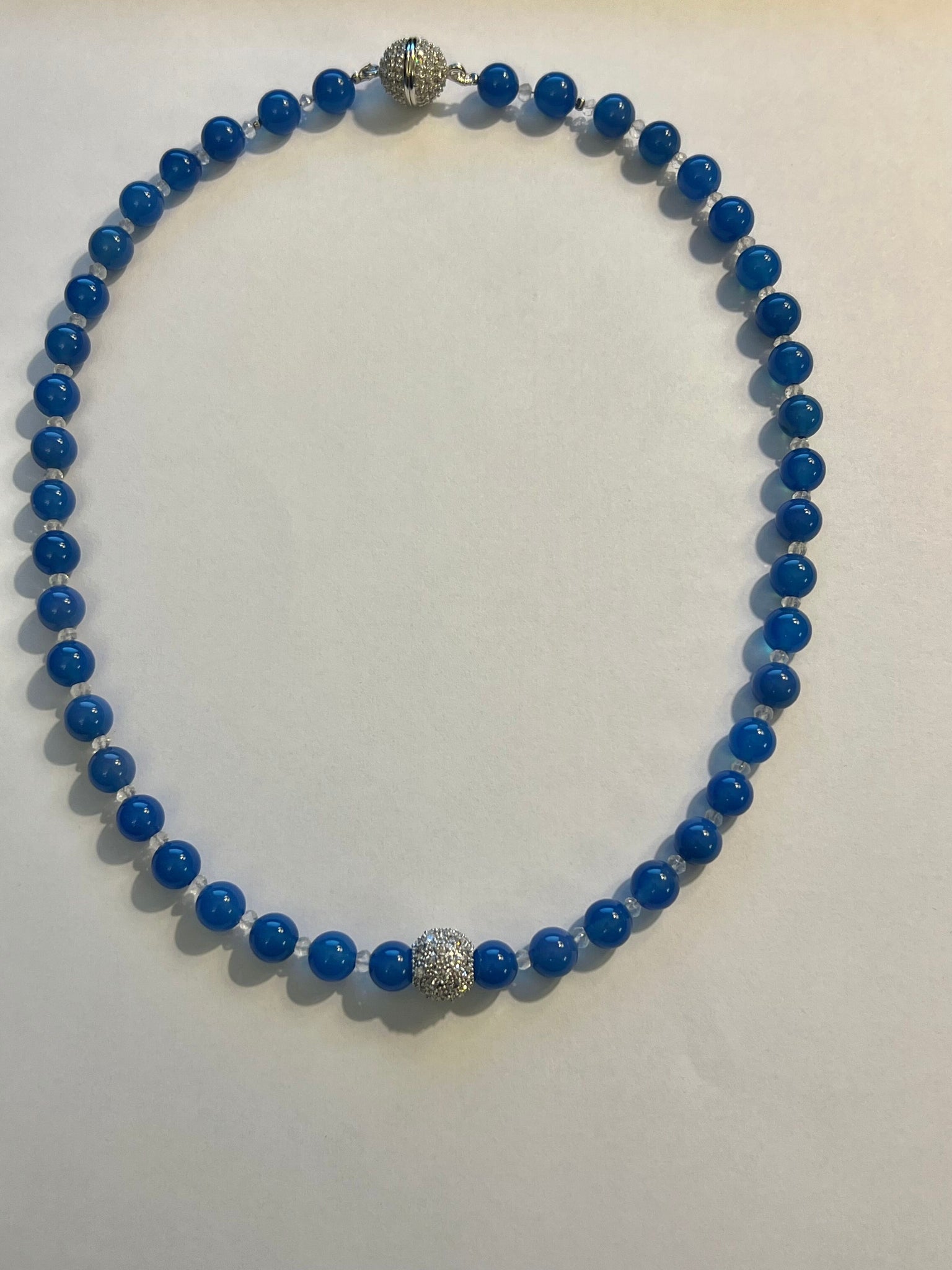 18.5 inches long 8mm Blue Jade 10 mm starburst 12 mm clasp